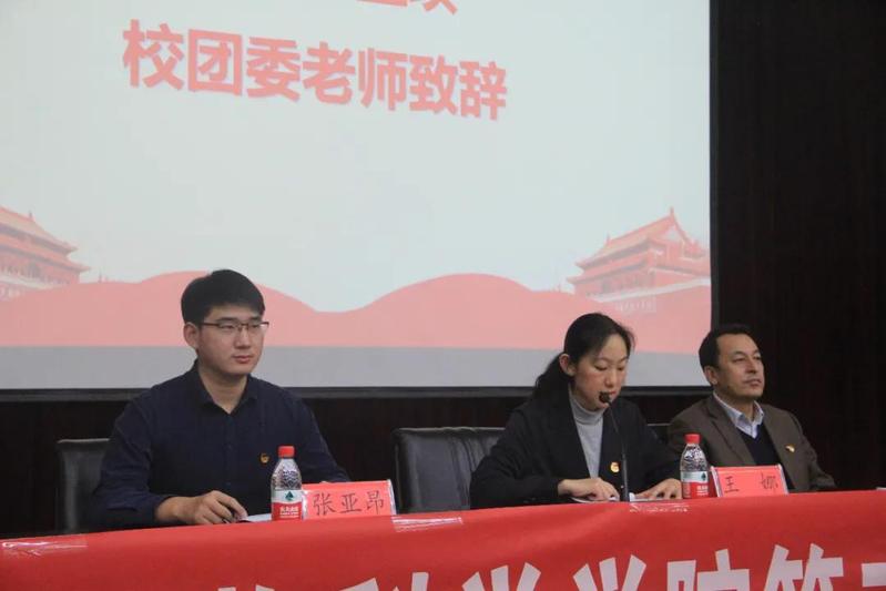 会议伊始,由校团委组织部副部长王娜老师对本次大会进行致辞,并表示:“各位19级的同学你们辛苦了,通过团委、学生会一年的磨练,各位的表达能力、思维能力、沟通能力、交际能力都获得巨大的提升,这段经历成为人生中宝贵的财富,希望你们以后在其他领域能够继续取得好的成绩!也希望新一届团学干部任职后能够继续发挥团委、学生会的优良作风与光荣传统,兢兢业业,为学校与同学们作出更大的贡献,创造更多的辉煌。”