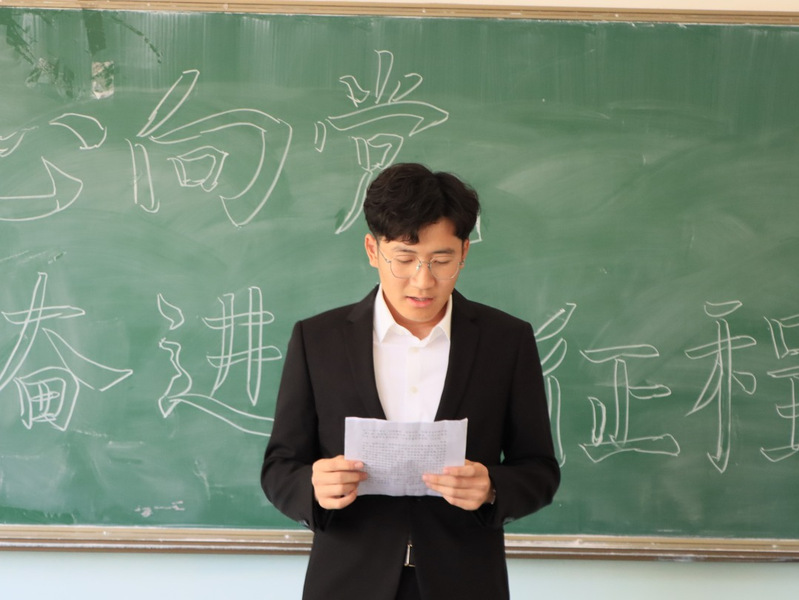 团委、学生会主席团成员穆扎帕尔·吾买尔对比赛致开幕词。他讲到:“开展此次演讲比赛旨在增强同学们的思想自觉性,践行党的二十大精神,作为新时代,新征程下的青年人要牢记使命。希望参赛同学们能够赛出风度、赛出水平。