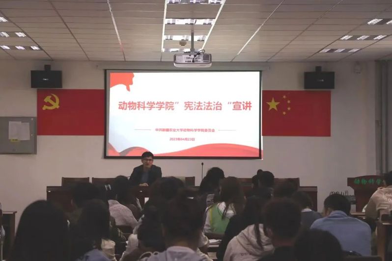 今年4月份是第二十个宪法法律宣传月,为全面贯彻落实党的二十大精神,深入学习贯彻习近平法治思想,4月24日,张亚昂老师带领动科学子于动科捕鱼神手 多媒体活动室进行“宪法法治”宣讲。