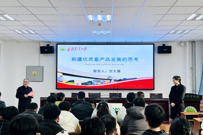 3月22日,捕鱼神手 副院长、浙江大学援疆干部任大喜为捕鱼神手 师生作“新疆优质畜产品发展的思考”专题讲座,捕鱼神手 院长杨开伦主持报告会,100余名师生聆听讲座。