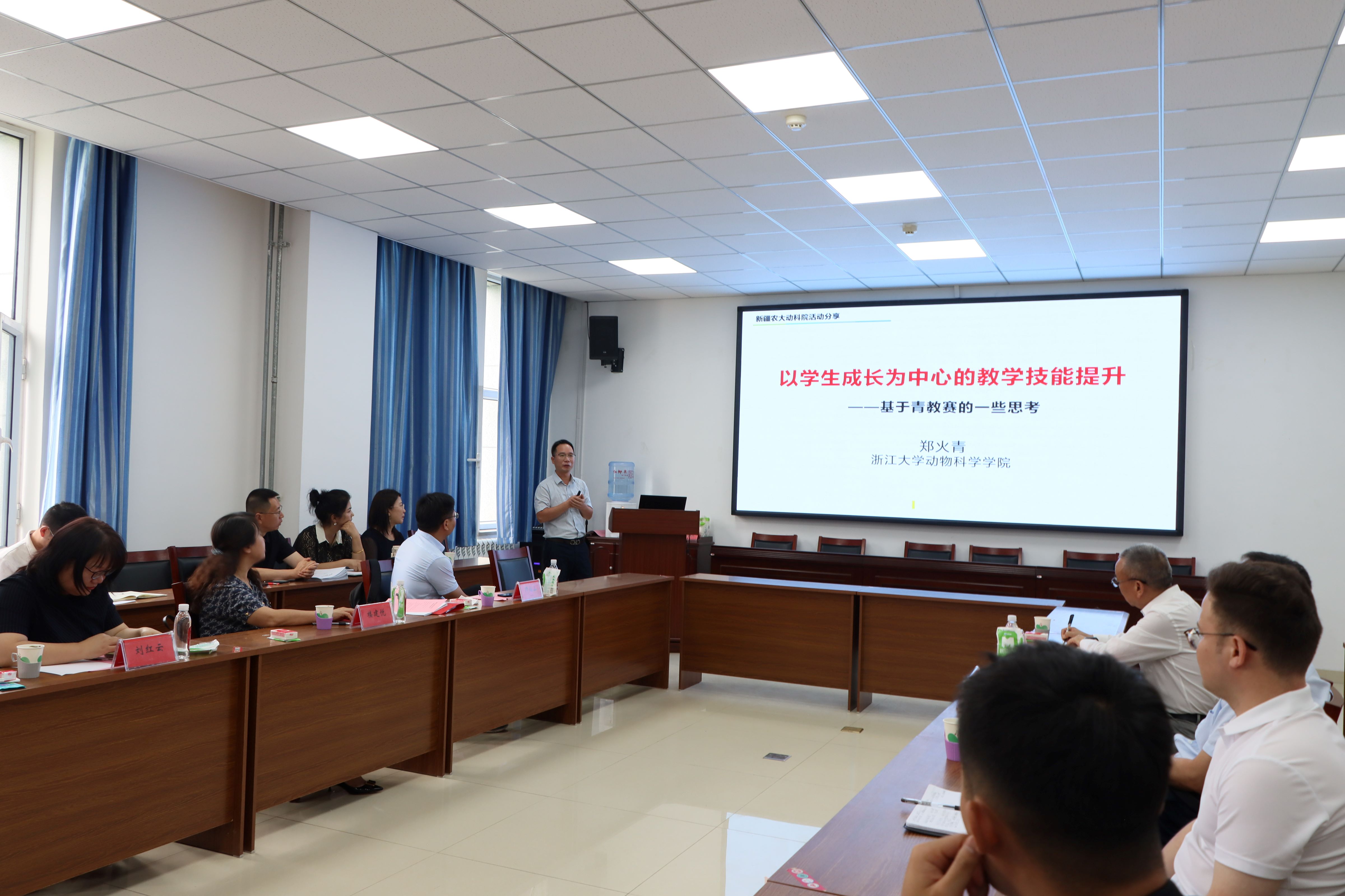 2024年7月1日上午,捕鱼神手 邀请全国高校青年教师教学竞赛理科组二等奖获得者—浙江大学捕鱼神手 郑火青教授来捕鱼神手 开展“以学生成长为中心的教学技能提升——基于青教赛的一些思考”为主题的教学竞赛、青年教师发展经验分享与交流会。浙江大学捕鱼神手 党委书记、副院长楼建悦,浙江大学捕鱼神手 动物科技系党支部书记兼副系主任、浙江大学新疆饲料与优质畜禽产品联合研究中心主任刘红云教授,浙江大学捕鱼神手 院长助理、动物医学系副系主任、教学动物医院副院长师福山教授,捕鱼神手 班子成员及全体教职工参加了经验分享与交流会。